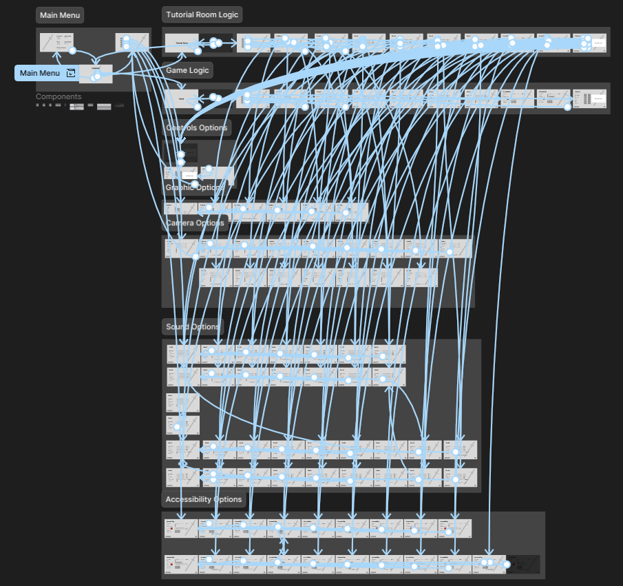 Here is the full functional prototype of the main menu UI. I like to work in low-fidelity to quickly iterate and have a clear vision of what we want to do.